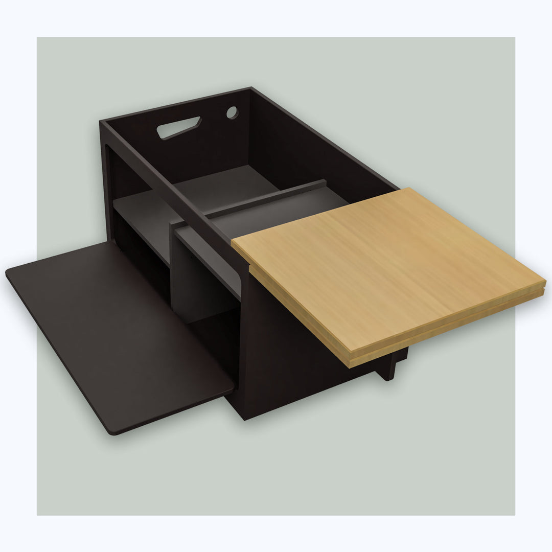 Zum Modulturm stapelbares Modul mit großen, abtrennbaren Staufächern, auf die von vorne, seitlich oder oben über praktische Klappen, Öffnungen und abnehmbare Deckel zugegriffen werden kann. Mehr