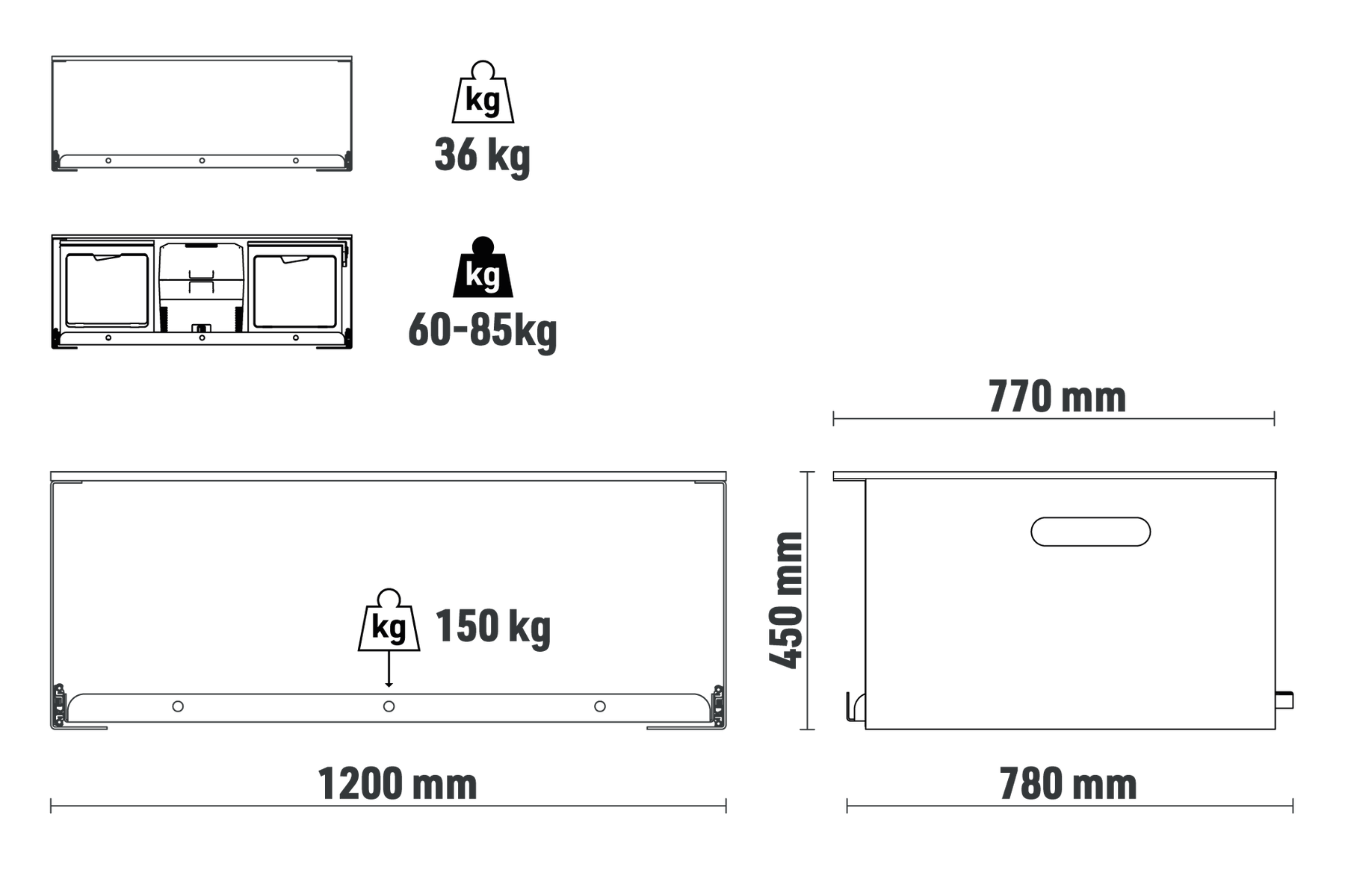 Belastbarkeit: 150 kg bei gleichmäßiger Verteilung