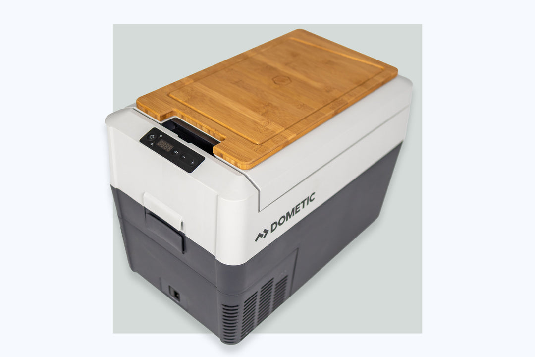Die mobile 31 Liter Kompressorkühl- und -gefrierbox passt perfekt zwischen das Wasser- und Kochermodul. Clever: das abnehmbare Bambus Schneidebrettl (optional) vergrößert gleichzeitig den Arbeitsbereich deiner Küche.