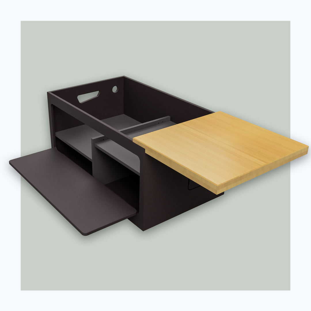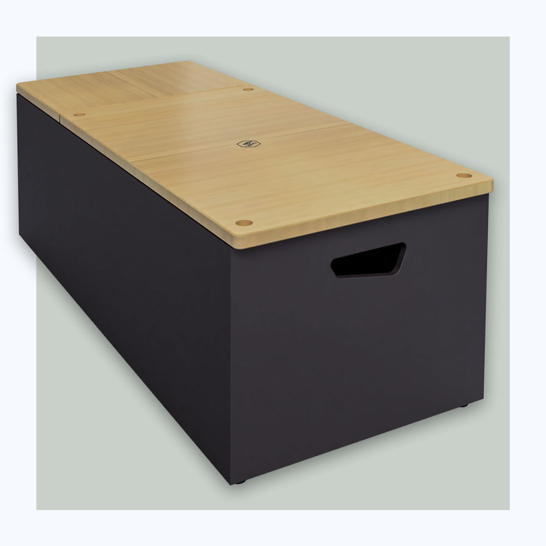 Großes, abtrennbares Staufach und abnehmbare Bambusdeckel. Clever: Alternativ kann der optionale Modulständer als Abdeckung genutzt werden und dadurch platzsparend verstaut werden. Mehr