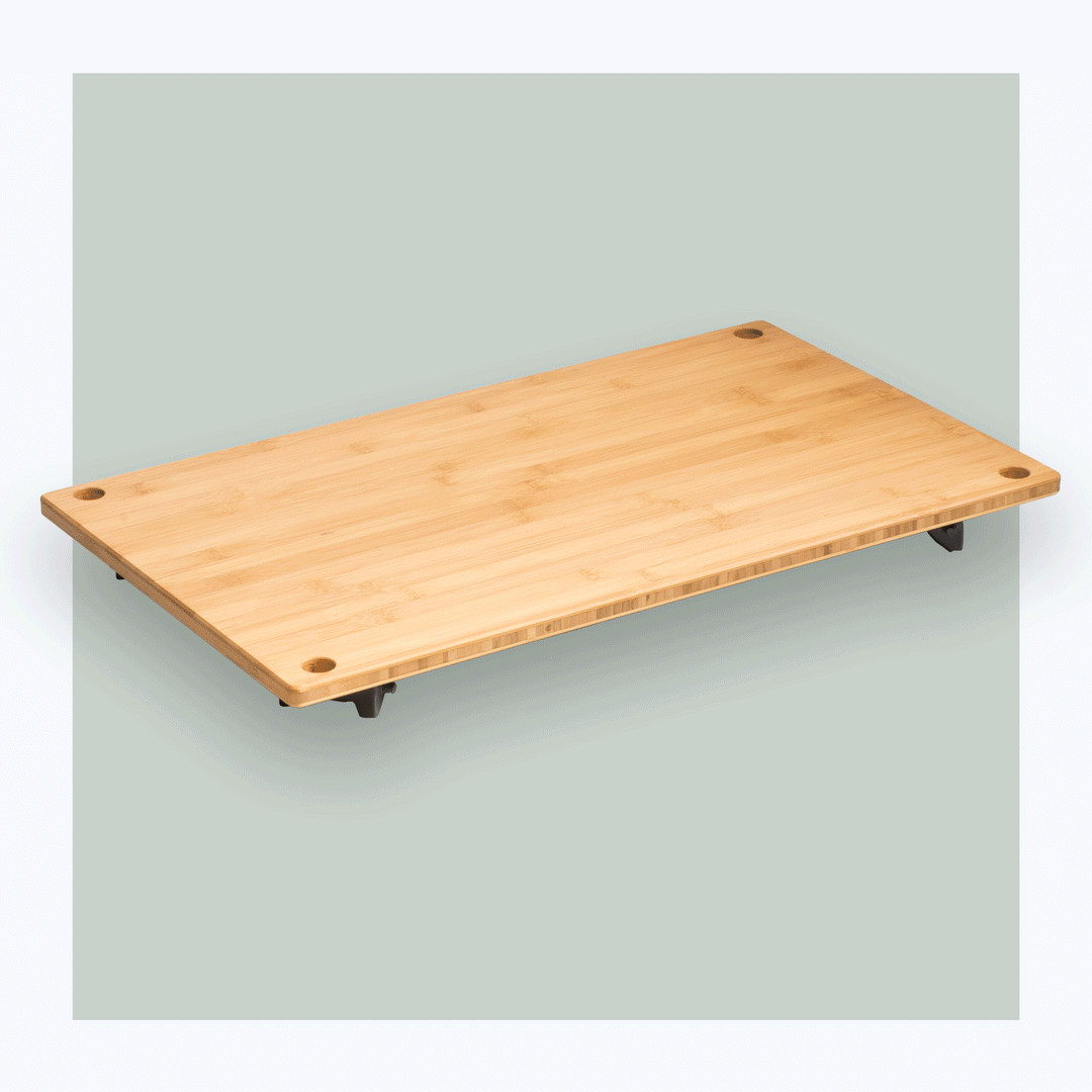 Die 31 Liter Kompressorkühlbox passt perfekt zwischen das Wasser- und Kochermodul und bietet ausreichend Stauraum. Clever: das abnehmbare Bambus Schneidebrett (optional). Mehr