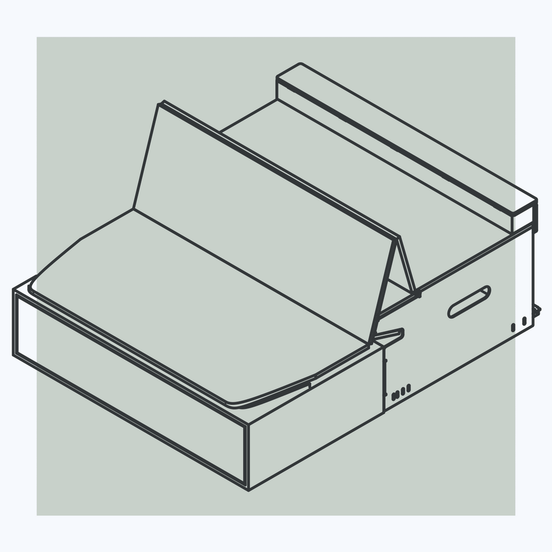Der große Bettkasten bietet Platz für sperrige Gegenstände oder Bettzeug. Clever: Der Bettkasten kann separat entfernt werden, sodass im Alltag Einzelsitze und Heckauszug genutzt werden können.